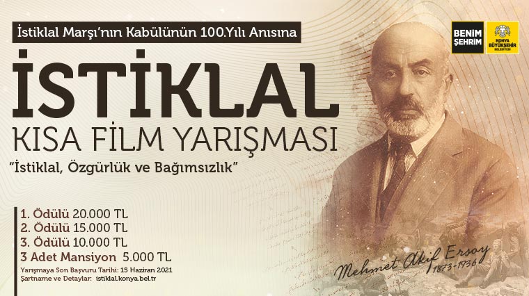 Konya Büyükşehir Belediyesi, İstiklal Marşı’nın kabulünün 100’üncü yılı anısına İstiklal Marşı temalı kısa film yarışması düzenliyor. Genç yönetmenlerin üretimlerine katkıda bulunmak ve yeni üretilecek filmlere destek olmak amacıyla düzenlenen yarışmaya son başvuru...