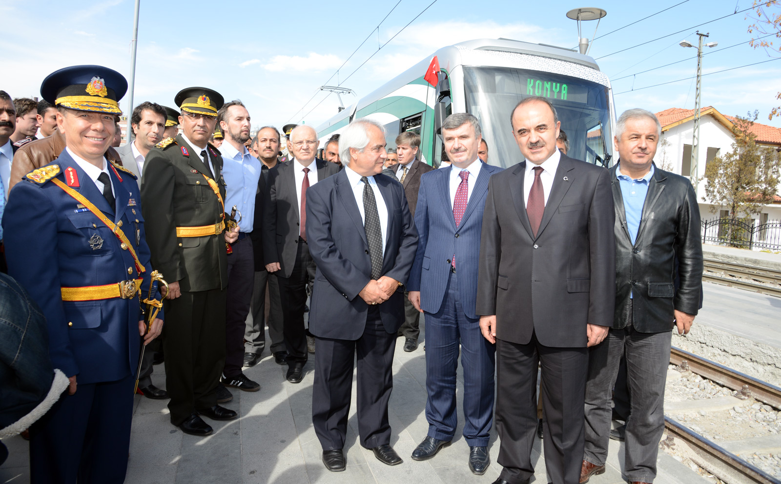Konya Valisi Muammer Erol, Garnizon Komutanı Tümgeneral Ali Çetinkaya ve Konya Büyükşehir Belediye Başkanı Tahir Akyürek, son model 60 tramvay alımı ile ilgili yapılan ihalenin ardından Konya’ya gelen ilk tramvayda deneme sürüşüne katıldılar. Vali Erol, Tümgeneral Çetinkaya ve Başkan Akyürek, 29 Ekim Cumhuriyet Bayramı kutlamalarının ardından yeni tramvayla Alaaddin Tepesi çevresindeki deneme sürüşüne katıldılar. CUMHURİYETİN 90. YILINDA 90 ÖNEMLİ ESER Anadolu’da tramvayı ilk kullanan şehir olan Konya’da raylı sistem taşımacılığında yeni bir dönemin başladığını vurgulayan Büyükşehir Belediye Başkanı Tahir Akyürek, 2012 yılında ihalesi yapılan tramvayların ilkinin Kurban Bayramı’nın birinci günü Konya’ya geldiğini hatırlattı. Selçuklu motifleriyle, halkın belirlediği yeşil-beyaz rengiyle, kamera sistemleri ile son model tramvayları şehre kazandırdıklarını kaydeden Başkan Akyürek, “Bugün 29 Ekim Cumhuriyet Bayramı. Cumhuriyetimizin 90. yıldönümü 90 önemli eserle kutlayacağız. Sadece sözle değil, şehrimizi çağdaş uygarlık seviyesine taşımak için önemli eserlerle kutlayacağız. Şimdi o süreci yaşıyoruz” dedi. Yeni tramvayın deneme seferleri ile rayın rehabilitasyon çalışmasının devam ettiğini vurgulayan Başkan Akyürek, KONYARAY çalışması çerçevesinde 35 olan durak sayının 22 olacağını, ulaşım süresinin de kısalacağını dile getirdi. ALAADDİN-ADLİYE HATTI ÇALIŞMASI BAŞLIYOR Alaaddin-Yeni Adliye arasındaki gidiş-geliş 14 kilometrelik raylı sistem hattının ihalesinin ardından yer tesliminin yapıldığını belirten Başkan Akyürek, bu hatta da 2014 yılı içinde seferlerin başlayacağını ifade etti. KONYARAY Konuşmasında KONYARAY’ın 4 ayağı olduğunu vurgulayan Başkan Akyürek, “Bunlar taşıtların yenilenmesi, yeni hat, mevcut hattın taşıtlara uygun hale getirilmesi ve şu anda Ulaştırma Bakanlığı onayında olan hafif metro sistedarikin tünel modeliyle yapılarak, yanmaz maddelerden üretilen taşıtların yer altından ulaşımının sağlanmasıdır” diye konuştu. Başkan Akyürek, toplu ulaşımda Türkiye’deki en avantajlı ihaleyi yaptıklarını hatırlatarak, 60 yeni tramvayın toplu ulaşımda kalitenin artması ve trafik açısından büyük bir avantaj olacağını da sözlerine ekledi. Tramvay ihalesini alan Skoda firmasının İkinci Başkanı Zal Shahbaz da, Konya raylı sistemlerinin genişlemesinde pay sahibi oldukları için duydukları mutluluğu ifade etti. 368 KİŞİ KAPASİTELİ Konya Büyükşehir Belediyesi tarafından alınan son model ve düşük tabanlı 60 tramvayın her biri koltukta 60, ayakta 308 olmak üzere toplam 368 kişi kapasiteli. Mevcut tramvaylardan 2,5 metre uzun olan yeni tramvaylar; 32,5 metre uzunluğa, 2,55 metre genişliğe sahip. Çift yön olarak kullanılabilen, çift taraflı kapıları bulunan tramvaylarda sürücü ve yolcu bölümlerinin tamamı klimalı.